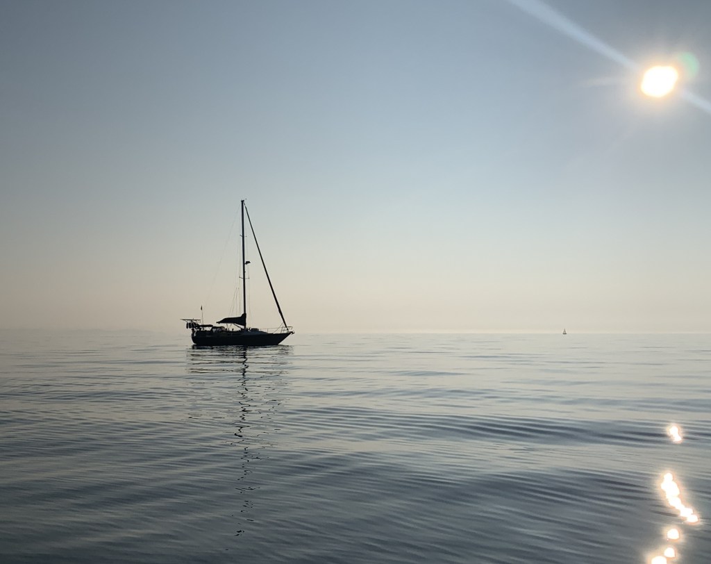 August 15 – After only about three hours of sleep, Jason and I were both awake for the day at 2:30 AM. We were both feeling the anticipation of what was to be a 14 hour sail day to get us ahead of some nasty weather coming. We prepped and waited until 5 o’clock to leave so that we could pull anchor with the skies shifting out of their darkest stage of night. We knew it was very likely that we had wrapped a waterlogged tree with the anchor and/or chain and we were right unfortunately. As Jas pulled up the chain, we could see that it was wrapped tightly around a big log. Well, we weren’t going anywhere until we figure out how to untangle it. The log looked so eerie coming up from the depths. I shone the flashlight on it while Jas worked his magic to use the boat hook to flip it upside down to release it from the chain’s grip. It worked and we watched it quickly and equally eerily slink silently back down to its resting place.