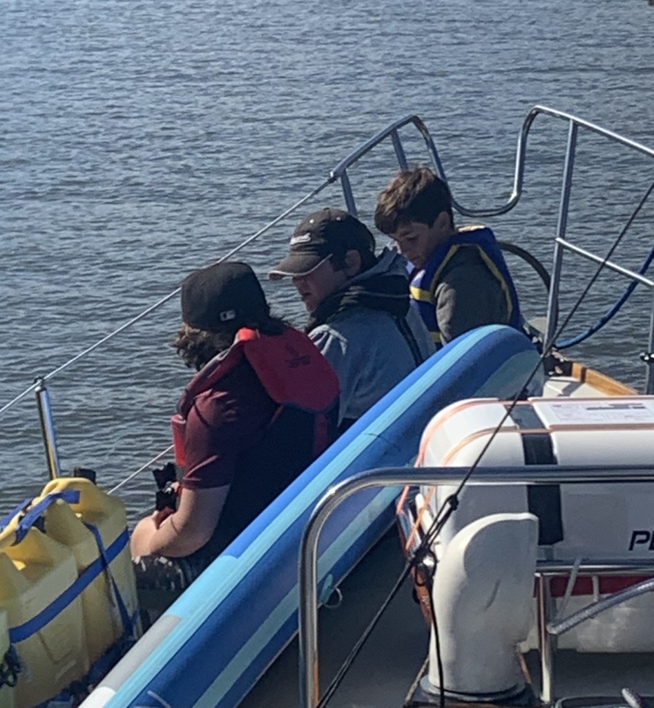 Dylan, Maureen and Dallin preparing to have us raft up to Surprise.