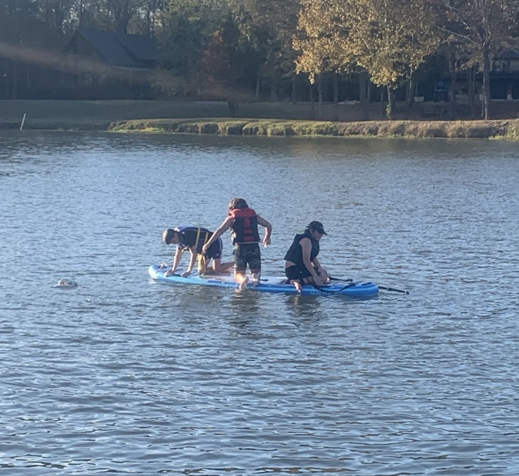 Our travel day after Columbus took us to Fenche Creek. Again, following Surprise (their Grand Banks troller is much speedier than us sailboats!), us and Wandering Winnie began our anchoring process. Deciding to explore a little bit, Jas tried taking us a but further into a little channel. Our depth went from 25 feet to 13 feet to 3.5 feet in a heartbeat! With our draft of only 5 feet, we immediately felt our keel do a soft but firm push into the bottom stopping us dead. Yup, we quickly concluded that it was time to turn around and raft up to Surprise! This was the first time we were anchored in water that was warm enough for the kids to jump in together. They had a blast splashing around with the paddleboard as Maureen discovered that we were in an area that has fresh water alligators. We did not see any but decided there will be no more swimming for the boys for awhile!