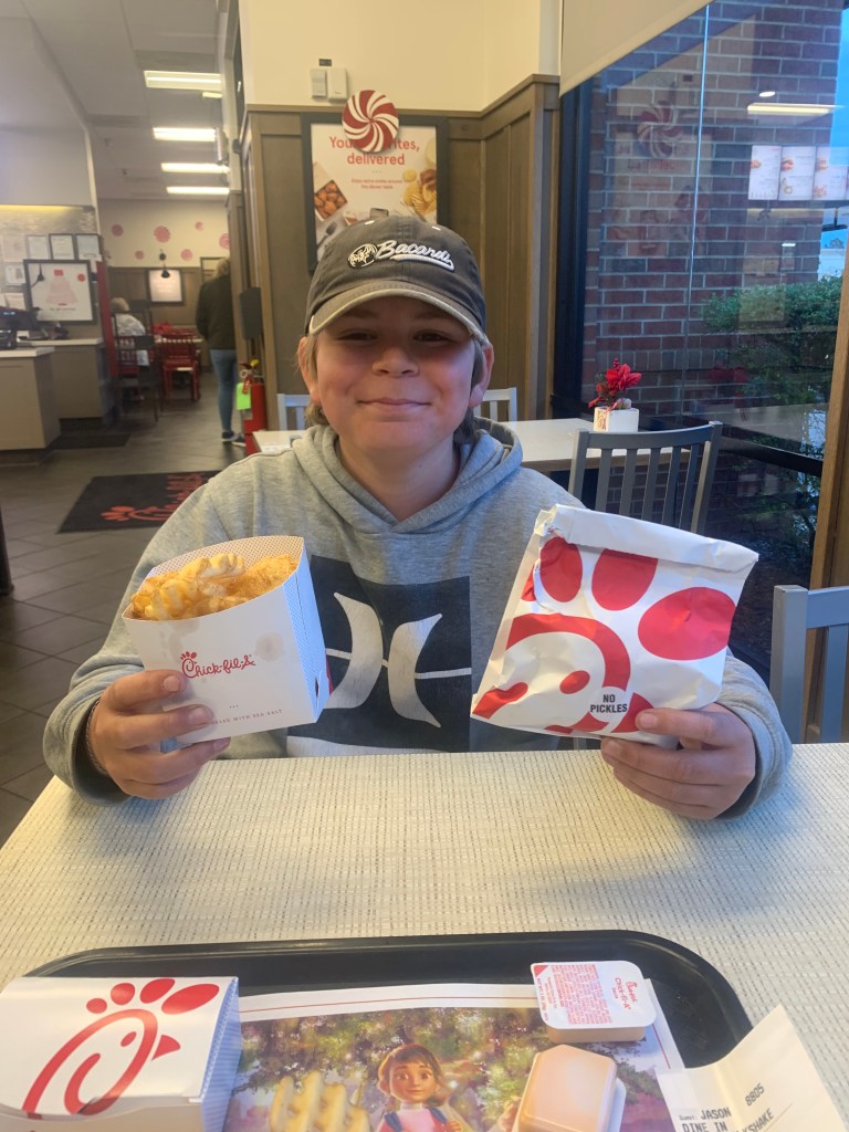 Dylan happily living his lifelong dream to try Chick-fil-A!