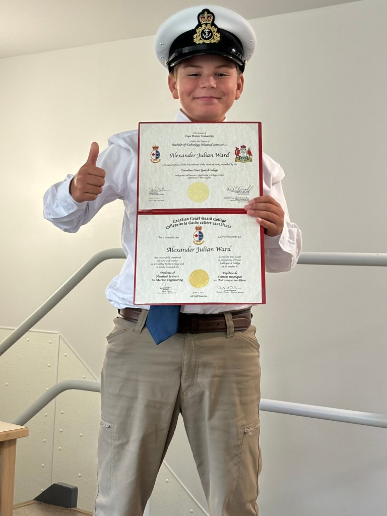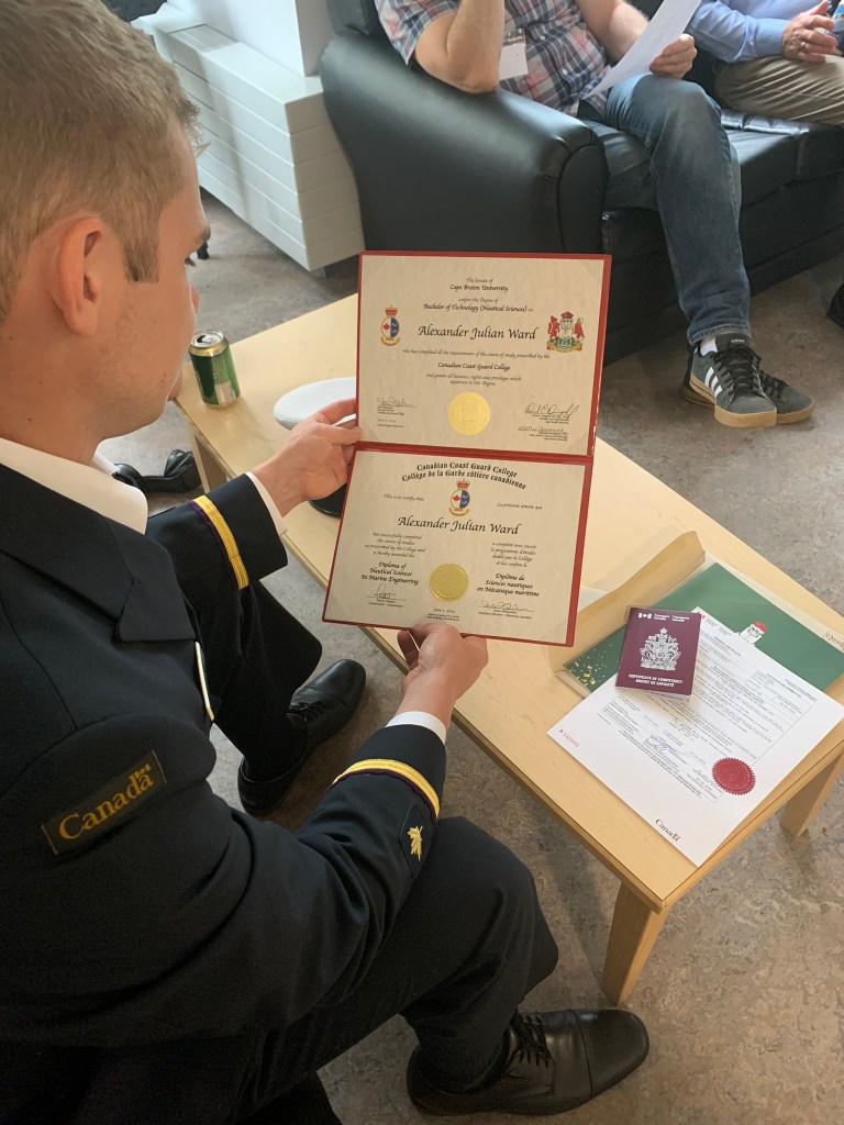 I am writing this blog on Monday, June 3rd at an altitude of 38,000 feet. We are on way back home to Starship after spending ten incredible days with loved ones as we celebrated Alex’s graduation as a Marine Engineer Officer from the Canadian Coast Guard College. Our trip to Nova Scotia was perfect and I would not have changed a thing! We just need to catch up on sleep now!