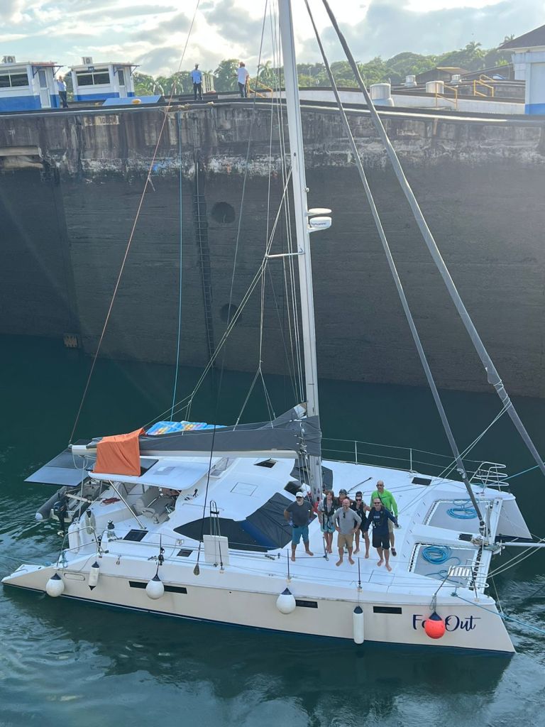 It was a very early start that day as the goal was to go all the way through as opposed to anchoring half way for a night. At about 5:00 AM the three of us stepped onboard and within moments we pushed their beautiful catamaran off the dock. The first step was to motor out into the bay so that the canal advisor can find us and hop onboard. The cost for a sailboat to go through the canal is about $3,000 and that includes the expense of an advisor to help with navigation and communications with lock staff. Our advisor was Moses and he was wonderful! He works weekends and we really hope he will be assigned to us in February so we will book for a Saturday and cross our fingers. One of the many responsibilities of the boat owner is to provide the advisor and crew with three hot meals that day all including protein. Chrissy handled that task perfectly with pastry beef patty’s, BLT’s, two types of pasta dishes, chicken wings. drinks and snacks. This gave me lots of great ideas for what I plan to prepare when it’s our turn.