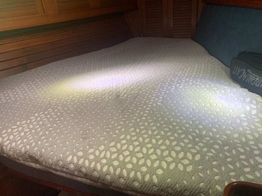 Another big project to do was the canvas work. The original dodger and bimini fabric no longer kept the rain out. Canvas David was referred to us and we began the process of having him and his mom sew our new dodger and bimini. This is very exciting as we also had him make clear strata glass (clear vinyl) surrounds. You guys…this is huge…this means no more wet sailing! No longer would we have big waves landing on us in the cockpit like they did on our passage from Jamaica! He also sewed in sun shades that we find work really well at cutting the heat. The next important task on the list was new mattress toppers. After that they replaced all sixteen curtains then reupholstered the settee and chart table cushions. Morning Stars had quite the nice little makeover thanks to David and his mom!
