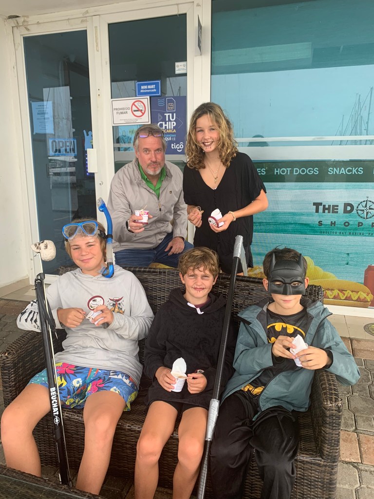 After our big canal adventure was over we refocused our efforts back onto Morning Stars. One by one the jobs were getting checked off on my big spreadsheet. There was more fun to be had though before we sailed off – Halloween! We actually got to celebrate Halloween twice at the marina. Friends on the boat Lady Penelope organized an early party as they were leaving before the 31st to go through the canal. For the official day, a few of us moms created a WhatsApp group and started party planning. The kids carved pumpkins and we decorated the BBQ area. That night a gaggle of a about a dozen excited, costumed kiddos set off trick or treating boats in the marina! After that we all partied into the night together!