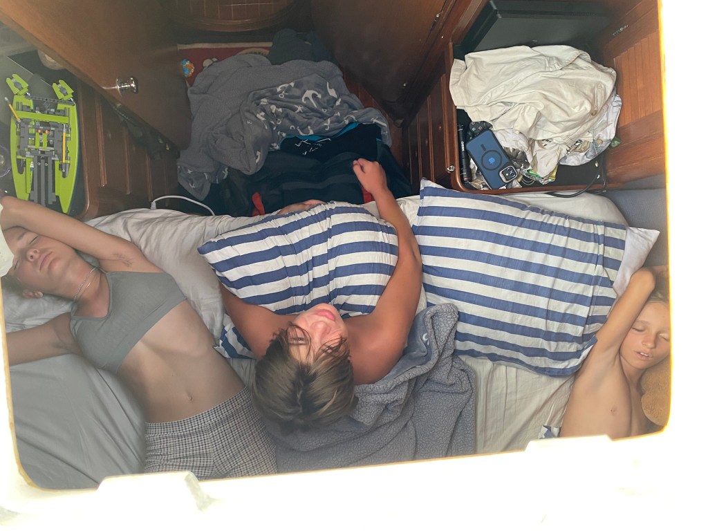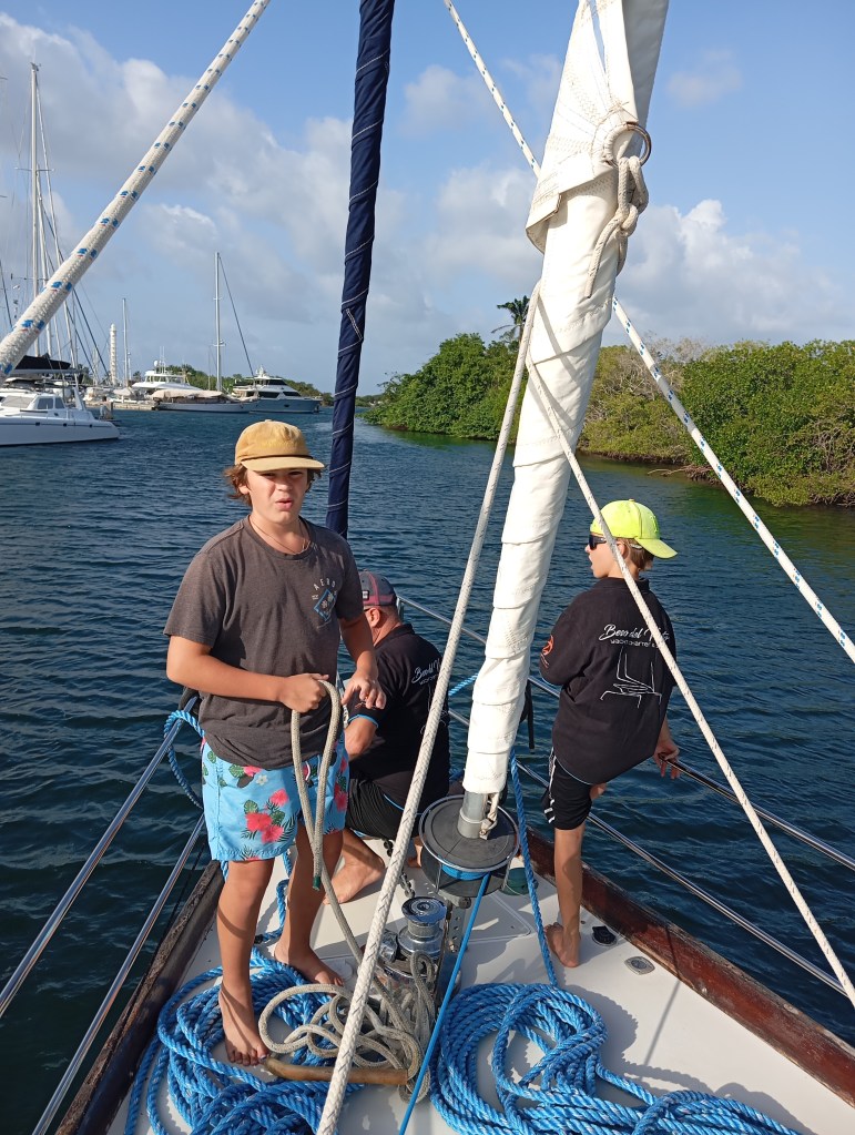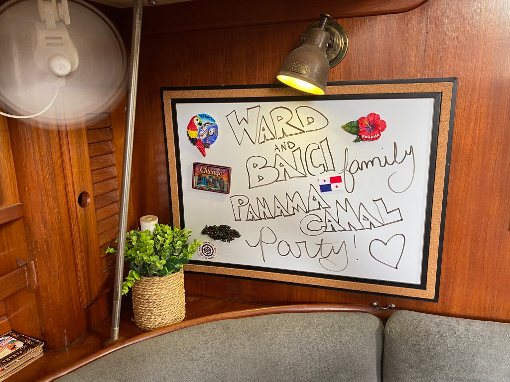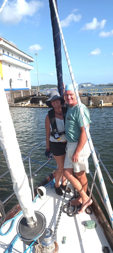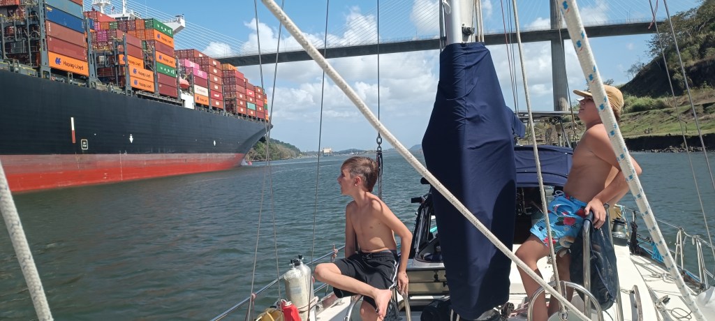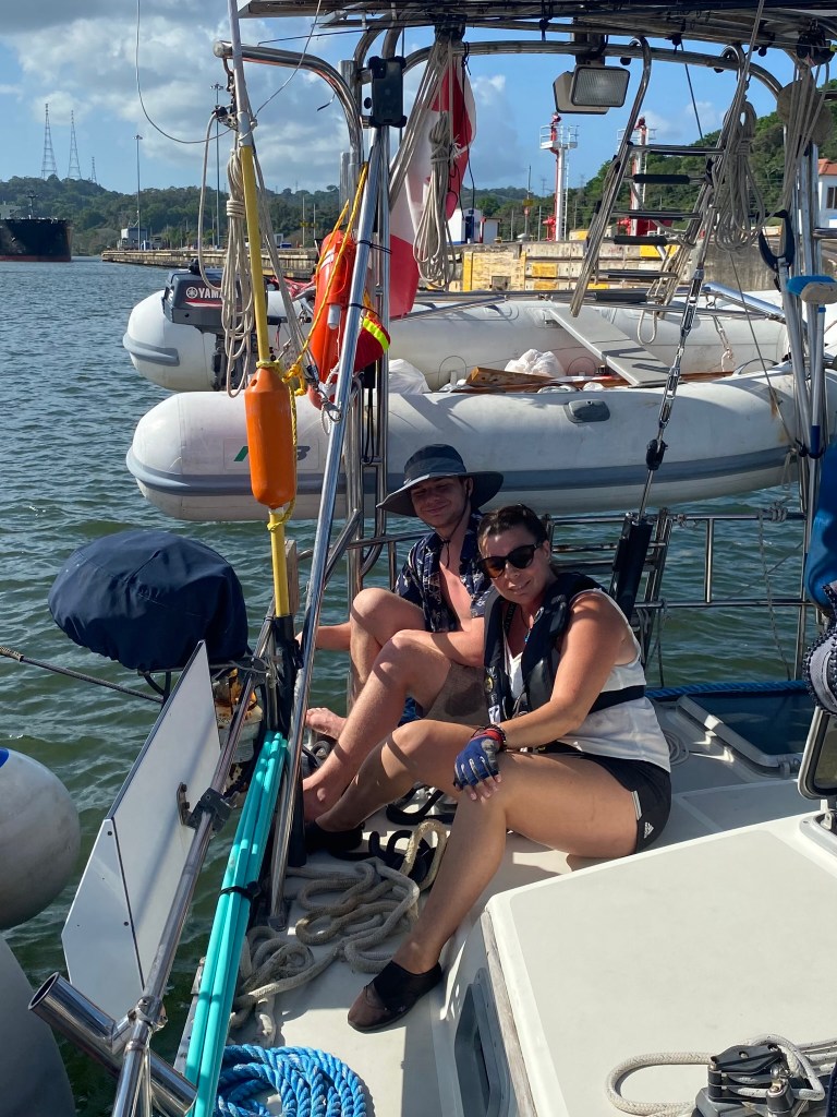 Sunday started off well, but, in sailing life nothing ever goes exactly as planned. Morning Stars decided we were all too relaxed so she chose to add some unwanted excitement to our day. A short distance before we entered the first Pacific side lock, we all of a sudden lost propulsion. 😲 Fortunately we were still a good distance from the lock and the current was carrying us along nicely. We also had a Marine Engineer Officer onboard! Alex quickly jumped into action as he assessed the situation with Jas. The decision was quickly made to raft back up to the catamaran. I also realized in those moments what our risks were. If we were not able to resolve the problem, a tow could cost us thousands and we’d lose out on our hefty deposit we paid to the canal. Taking deep breaths I had faith that Alex and Jas would figure things out and they did. They had discovered that the drive shaft had come out of the transmission. After about a half hour of work they got us back up and running. Unfortunately that issue also showed us that once on the Pacific side, we would need to do a haul out to address the situation properly.