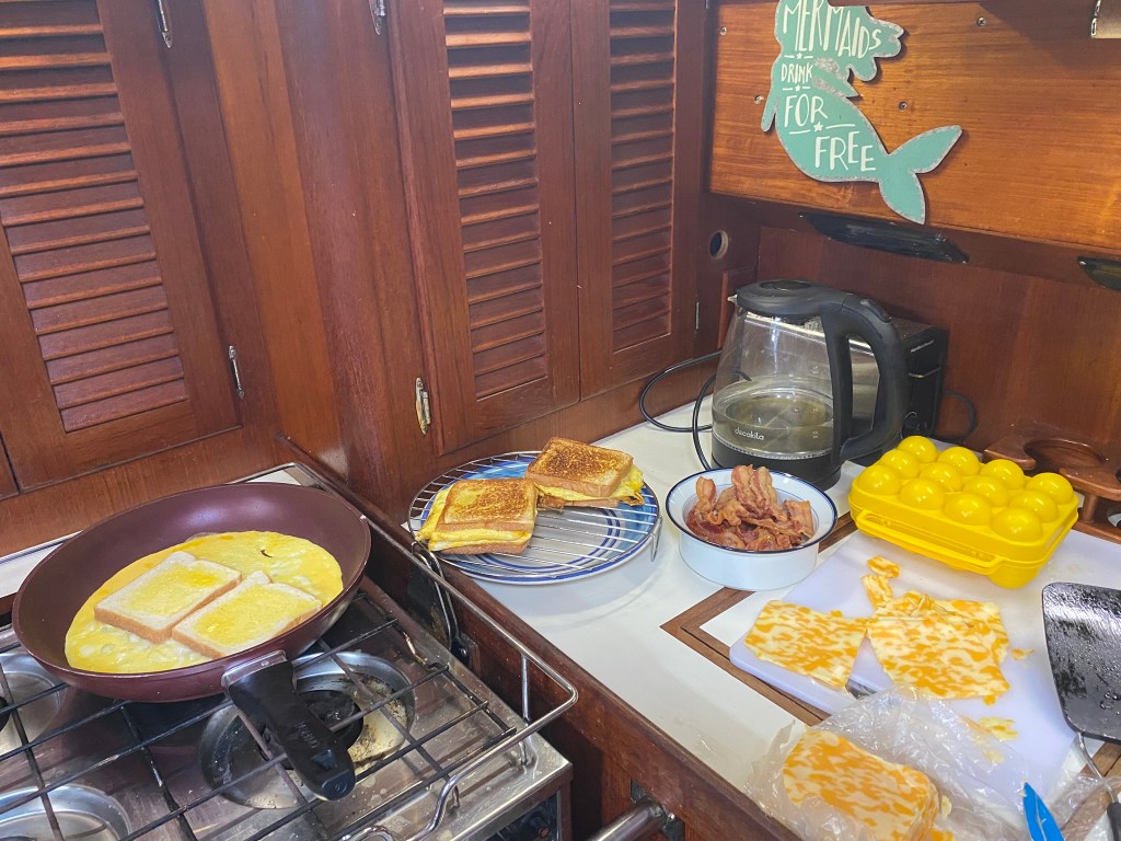 It was 10:00 PM by the time we were secured to our mooring ball on Gatun Lake on that very windy Saturday night. I quickly fed our advisor and he hopped off the boat in the same way he jumped on – a pilot boat found us and picked him up. The rest of us then settled into a dinner of chicken pasta, coleslaw and fresh bread, followed of course by Stella’s yummy muffins.