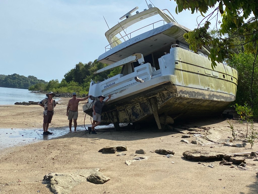 The following day we took the dinghy around to the other side of the island. We found a boat that has seen better days and wondered what happened. We decided that the most likely scenario was its anchor let go in a storm.