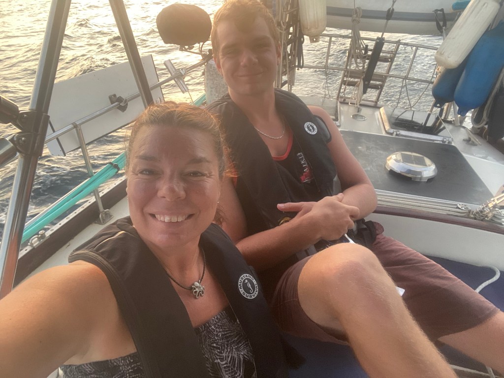 We wanted to make sure we arrived at the marina in daylight so we pulled anchor before the sun rose above the horizon. The plan was for Alex and Jason to get us underway around 3 AM and then I would come up at 6 AM to go on watch. I remember waking up as they pulled anchor and thinking ‘Am I really going to lay here and miss the chance to sail under the stars with them?’ Nope! I got up and joined them in the cockpit while Dylan continued to sleep. After sunrise, Jas went to rest and it was just Alex and I. We were entertained by a pod of dolphins and enjoyed the beautiful sailing conditions.